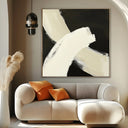 "Вълна на съзнанието" е печат върху платно, който улавя същността на съвременния абстракционизъм. Картината представя широки щрихи от кремаво бяло, които се преплитат на дълбок черен фон, създавайки мощен и динамичен визуален контраст.