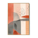 Този печат върху платно, озаглавен "Симфония на земята", се състои от три панела, които заедно създават абстрактно и модерно произведение на изкуството. Доминиращите цветове са теракота, сиво и бяло, с акценти в черно и леки нюанси на розово.