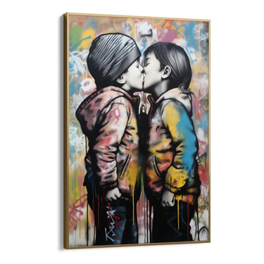 Questa stampa su tela intitolata "Amore Universale" cattura un momento di tenerezza e innocenza tra due bambini che si scambiano un bacio. Il quadro rappresenta l'amore puro e semplice, un sentimento universale che trascende età e culture.