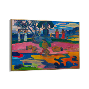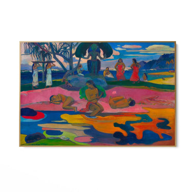 "Giorno di dio" di Paul Gauguin è una stampa su tela che cattura l'essenza della vita e della spiritualità tahitiana. Questo dipinto vibrante e colorato rappresenta una scena esotica con figure umane immerse in un paesaggio naturale ricco di simbolismo.