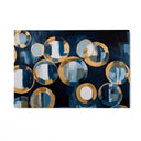 I colori predominanti in questa opera sono il dorato dei cerchi e le varie sfumature di blu dello sfondo. Il contrasto tra il brillante oro e il profondo blu crea una sensazione di profondità e tridimensionalità, rendendo il quadro particolarmente affascinante e adatto a qualsiasi ambiente moderno.