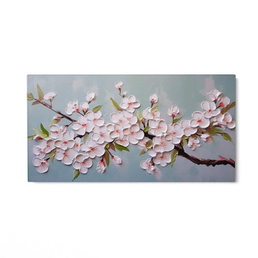 La stampa su tela "Fioritura Primaverile" cattura la bellezza delicata dei fiori di ciliegio in piena fioritura. Questo quadro rappresenta un ramo di ciliegio ricoperto da una miriade di fiori bianchi e rosa, simbolo di rinascita e nuova vita.