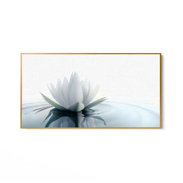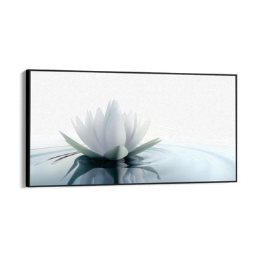 Il quadro "Calma Naturale" è una stampa su tela che rappresenta un fiore di loto bianco che galleggia serenamente su una superficie d'acqua calma. La composizione trasmette una sensazione di pace e tranquillità, perfetta per creare un'atmosfera rilassante in qualsiasi ambiente.