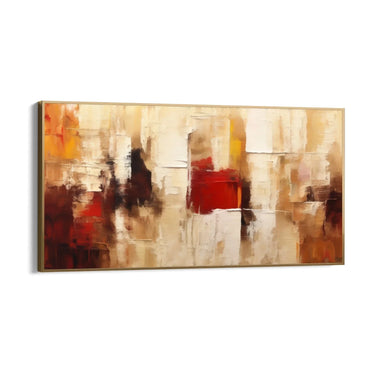 I colori predominanti sono il rosso intenso, il bianco crema e diverse sfumature di marrone e beige. Il rosso, in particolare, aggiunge un tocco di lusso e calore, mentre i toni neutri bilanciano l'intera composizione, rendendola adatta a qualsiasi ambiente.