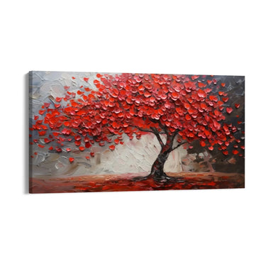 "Effusione di Petali" è una splendida stampa su tela che cattura l'essenza della natura in un'esplosione di colori e texture. Questo quadro raffigura un albero maestoso con una chioma rigogliosa composta da petali rossi vivaci, che sembrano quasi fluttuare nell'aria.