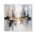 La stampa su tela "Linea Emotiva" rappresenta un'opera d'arte astratta che cattura l'attenzione con la sua composizione dinamica e i colori ricchi. L'opera evoca un senso di profondità e movimento attraverso l'uso sapiente di tonalità neutre e accenti metallici.