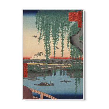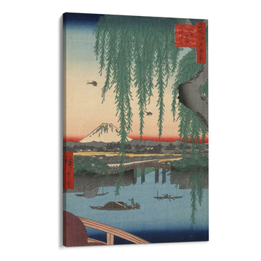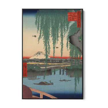Questa stampa è un esempio perfetto dell'ukiyo-e, un genere di stampa artistica giapponese che fiorì tra il XVII e il XIX secolo. Gli elementi naturali, come il salice e il Monte Fuji, sono rappresentati con grande cura e precisione, evidenziando l'abilità dell'artista nel catturare la bellezza effimera del mondo.