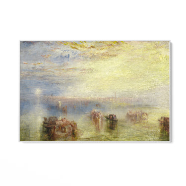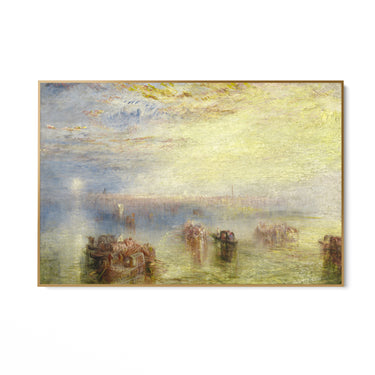 "Approccio a Venezia" di William Turner è una straordinaria stampa su tela che cattura la magia e il fascino della città lagunare. Questo capolavoro pittorico rappresenta una scena di Venezia avvolta in una luce eterea e nebbiosa, tipica dello stile impressionista dell'artista.