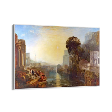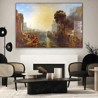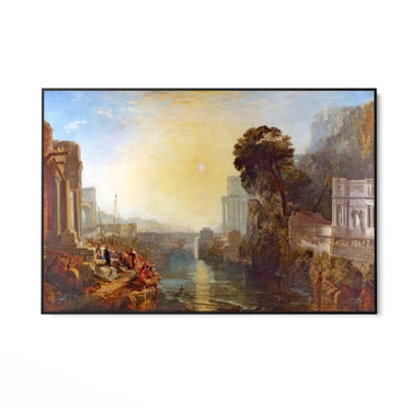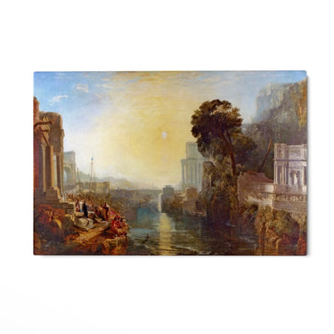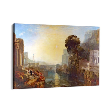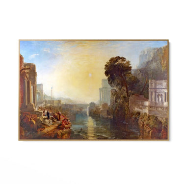 "Didone costruisce Cartagine" di William Turner è una stampa su tela che cattura un momento storico e mitologico con grande maestria. Il quadro rappresenta la fondazione della città di Cartagine da parte della regina Didone, un tema tratto dall'Eneide di Virgilio.
