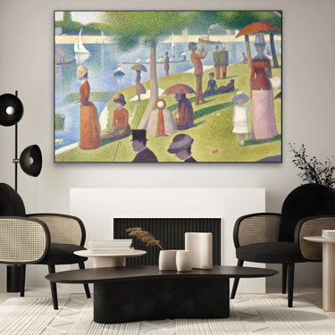 "La Grande Jatte" od Henri-Edmond Cross je mimořádné umělecké dílo, které zachycuje okamžik každodenního života v parku s výhledem na řeku. Tento tisk na plátně představuje živou scénu s lidmi, kteří si užívají den venku, někteří sedí na trávě, jiní stojí nebo procházejí. Obraz je charakterizován klidnou a uvolněnou atmosférou.