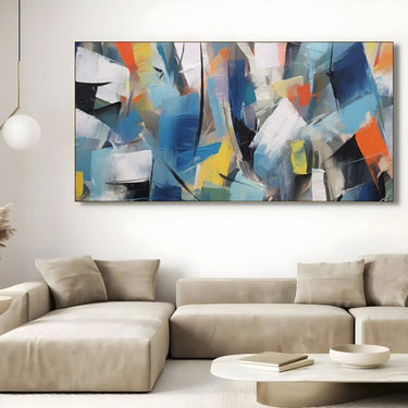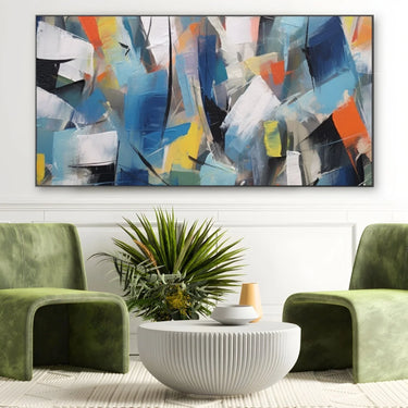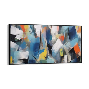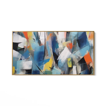 Obraz představuje explozi emocí a pohybů, naznačující pocit energie a kontrolovaného chaosu. Prolínající se a překrývající tvary vytvářejí trojrozměrný efekt, který zve diváka k prozkoumání každého rohu plátna.