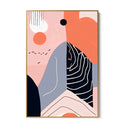 Obraz představuje fúzi abstraktních tvarů, které se protínají a překrývají, vytvářejí dynamický a současný efekt. Tvary zahrnují kruhy, vlnité linie a barevné bloky, které se kombinují do soudržného a vizuálně stimulujícího celku.