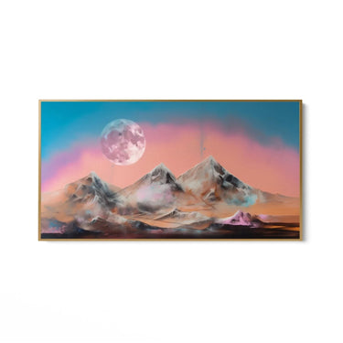 V popředí se zdá, že marťanské hory vystupují z plátna díky malířské technice, která přidává texturu a rozměr. V pozadí dominuje na obloze velký úplněk, který vnáší pocit klidu a úžasu. Tento tisk na plátně je ideální pro ty, kteří chtějí přidat do svého obytného prostoru nádech fantazie a dobrodružství.