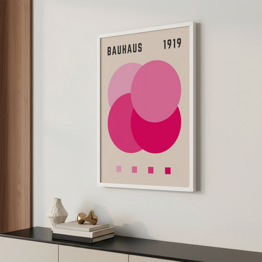 Inspirace Bauhausem se jasně odráží ve výběru barev a jednoduchých geometrických tvarů. Tento styl, známý svou funkčností a jednoduchostí, činí Plakát vhodným do moderních a minimalistických prostor.