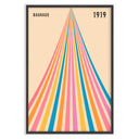 Design plakátu odráží principy Bauhausu, které kombinují funkčnost a estetiku. Stoupající linie symbolizují pokrok a inovaci, ústřední témata hnutí Bauhaus. Neutrální béžové pozadí zvýrazňuje barevné pruhy, vytvářející vizuální kontrast, který upoutává pozornost.