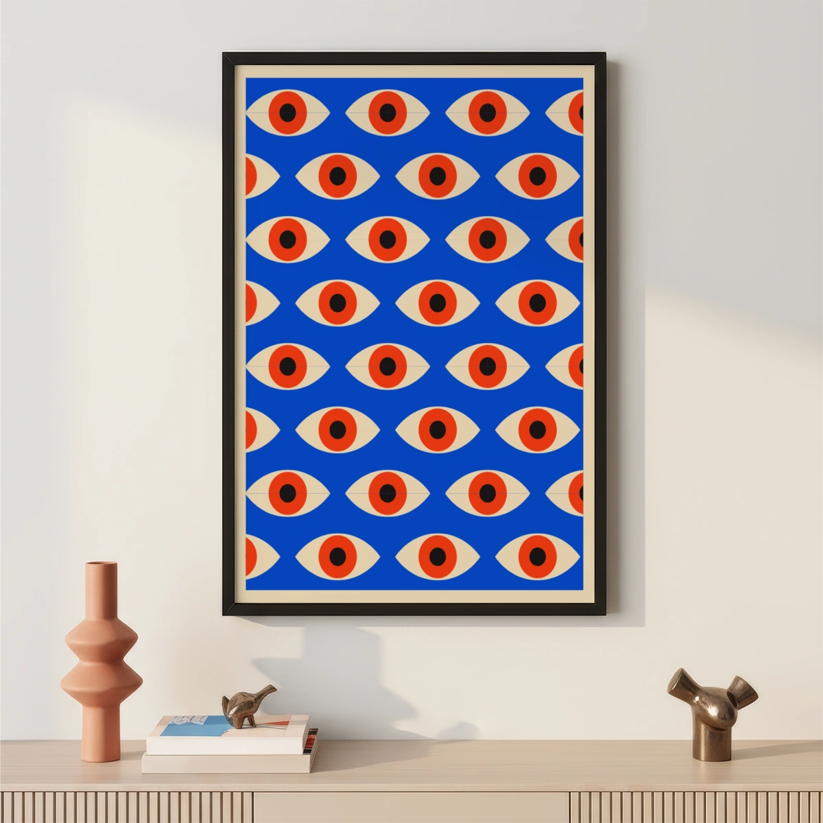 Vzor očí lze interpretovat jako symbol bdělosti a uvědomění, což přidává designu prvek konceptuální hloubky. Tento Plakát je ideální pro ty, kteří chtějí dodat jakémukoli prostoru nádech modernosti a originality.