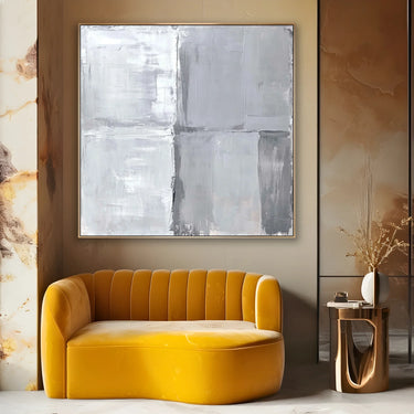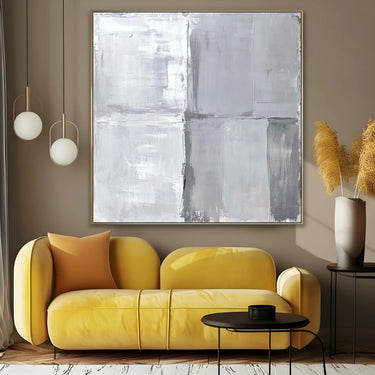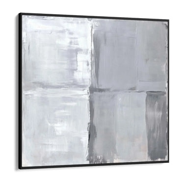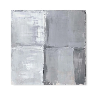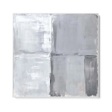 De dominerende farver i dette maleri er grå og hvid, med lette nuancer, der spænder fra lysegrå til mørkegrå. Disse neutrale toner giver værket en afdæmpet elegance, hvilket gør det velegnet til ethvert moderne miljø.