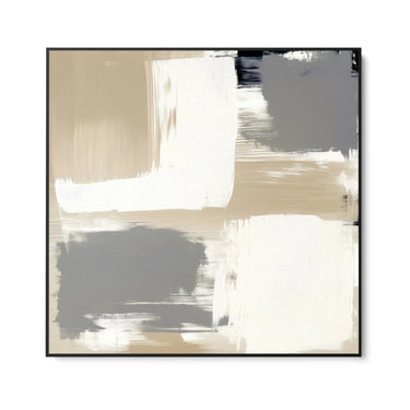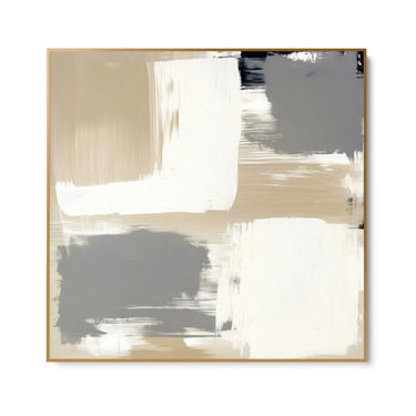 De dominerende farver er beige, hvid og grå, som smelter harmonisk sammen og skaber en afslappende og sofistikeret visuel effekt. Beige giver varme og stabilitet, mens hvid tilføjer lysstyrke og renhed. Grå, med sine neutrale toner, balancerer hele kompositionen og giver en følelse af balance og ro.