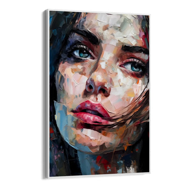 Dette lærredstryk, med titlen "Intense blik", fanger essensen af menneskelige følelser gennem tre kvindeportrætter. Hvert ansigt er malet med en teknik, der blander realisme og abstraktion, hvilket skaber en ekstraordinær og engagerende visuel effekt.