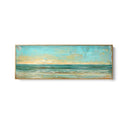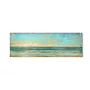 The painting "Tra I Confini" is a splendid print on canvas that captures the serene beauty of a seascape. The scene represents a calm sea with light waves gently crashing on the shore, under a clear and bright sky.