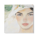The painting conveys a feeling of serenity and timeless beauty. The details of the face, such as the well-defined eyebrows and delicately colored lips, add depth and realism to the work. This canvas print is perfect for adding a touch of elegance and sophistication to any environment.