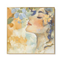 "Golden Breath" is a beautiful canvas print that captures the beauty and serenity of a moment of contemplation. The painting depicts the profile of a woman with closed eyes, immersed in an atmosphere of peace and harmony as she loses herself in the scent of a flower.