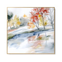 This canvas print, titled "Autumn Stream," captures the serenity and beauty of an autumn landscape. The scene depicts a peaceful stream reflecting the vibrant colors of the surrounding trees.