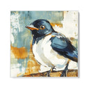 The canvas print "Winter Gaze" captures the essence of a perched little bird, with an attentive and curious look. The artwork uses a combination of cool and warm colors, creating a fascinating contrast that draws attention.