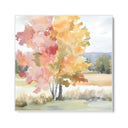 This canvas print depicts a charming autumn landscape. At the center of the composition, a tree with vibrant colors immediately captures attention. The tree's leaves are painted with delicate shades of orange, red, and yellow, evoking the warmth and beauty of the autumn season.