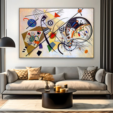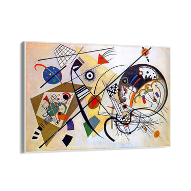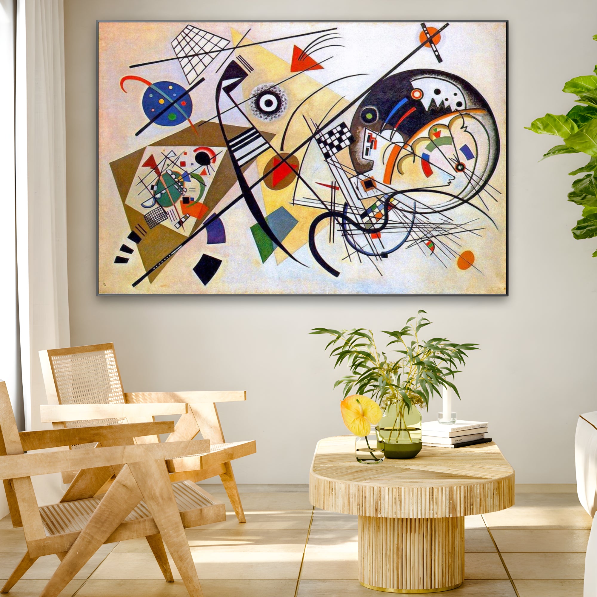 "Composizione 8" è una delle opere più celebri di Wassily Kandinsky, un maestro dell'arte astratta. Questo dipinto su tela cattura l'essenza del movimento e dell'energia attraverso l'uso di forme geometriche e linee dinamiche.