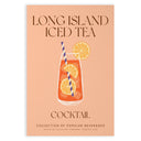 The title "Long Island Iced Tea" is written in large brown letters at the top of the Poster. Below the glass, we find the word "Cocktail" in elegant characters, followed by the phrase "Collection of Popular Beverages" in smaller characters.