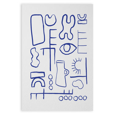 The Poster "Mappa Segreta" is an abstract artwork that captures attention with its unique and minimalist design. Created on a white background, it features a series of lines and geometric shapes drawn in a deep blue.