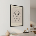The predominant colors are beige for the background and black for the face drawing and text. The combination of these colors gives the Poster an elegant and clean look.