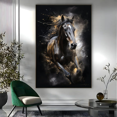 See kunstiteos edastab tugevat vabaduse ja jõu tunnet. Tausta tumedate toonide ja kuldsete valguste kontrast rõhutab hobuse kuju, tuues selle jõuliselt esile. See on ideaalne teos neile, kes armastavad loomi ja soovivad lisada oma sisekeskkonnale energiat ja elujõudu.
