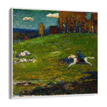 "Sinine rüütel" on kuulsalt maalikunstnik Vassily Kandinsky lõuenditrükk. See meistriteos kujutab sinises riietatud rüütlit, kes ratsutab valgel hobusel läbi rohelise maastiku. Stseen on sukeldunud elavasse ja dünaamilisse loodusesse, kus taustal on sügispuud, mis lisavad soojust ja sügavust.