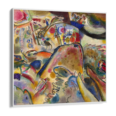 Kandinskij kasutab rikkalikku ja mitmekesist paletti, mille toonid ulatuvad soojadest punastest ja kollastest kuni külmade siniste ja rohelisteni. Värvid on kantud otsustavate pintslitõmmetega ja kihistustega, mis loovad sügavust ja liikumist, muutes iga maali nurga visuaalseks huvipunktiks.