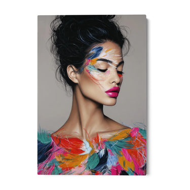 "Bellezza Piumata" lõuenditrükk kujutab lummavat ja elavat naise portreed. Naise nägu on joonistatud õrnade ja täpsete joontega, samal ajal kui tema suletud silmad ja erkroosad huuled lisavad rahulikkust ja graatsiat.