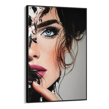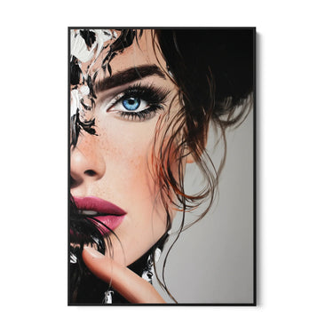 "Emotsioon Peidus" on lõuenditrükk, mis tabab inimese pilgu intensiivsust ja sügavust. Maal kujutab naise nägu, keskendudes eriti tema läbistavale sinisele silmale ja täidlastele roosakatele huultele. Näo detailid on esitatud suure täpsusega, rõhutades frekklisid ja tumedaid juukseid, mis raamivad nägu.