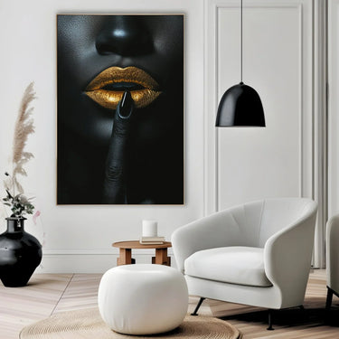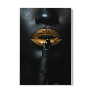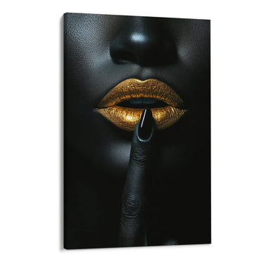 Selle maali peamised kasutatud värvid on sügav must ja särav kuld. Nende kahe värvi kontrast loob võimsa ja peene visuaalse efekti. Nahatekstuur ja kuldsete huulte läige lisavad teosele sügavust ja realismi.