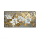 Selle teose peamised värvid on lillede valge, tausta kuldne ja hall, mis loob elegantse kontrasti. Kuldseted pintslitõmbed annavad liikumise ja elujõu tunde, samal ajal kui hallid toonid tasakaalustavad kogu kompositsiooni, muutes selle sobivaks igasse siseinterjööri.