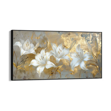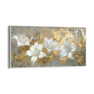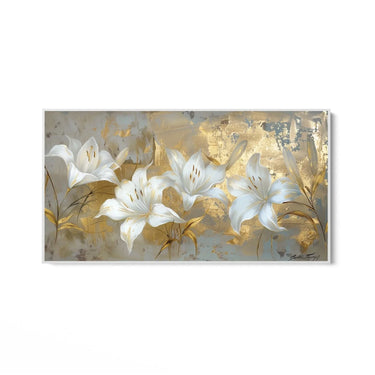 "Spirito Aurato" on lõuenditrükk, mis tabab loomuliku ilu olemust õrnade ja harmooniliste värvide kasutamise kaudu. See maal kujutab valgete liiliate gruppi, mis sümboliseerib puhtust ja peenetundelisust, kerkides esile kuldsel ja hallil taustal. Kuld lisab luksuse ja soojust, samas kui hall annab rahu ja tasakaalu tunde.