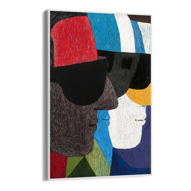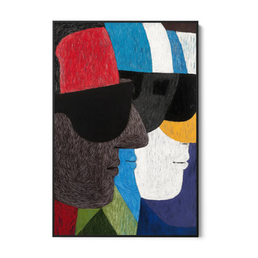 Selles teoses domineerivad värvid on punane, sinine, valge ja must. Esimene nägu esiplaanil on iseloomulik punase mütsi ja mustade prillidega. Teine nägu, mis asub keskel, on sinise ja rohelise toonides, samas kui viimane nägu, mis on rohkem tagaplaanil, on maalitud heledates värvides nagu valge ja helesinine, kollase puudutusega, et rõhutada mõningaid detaile.