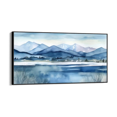 See lõuenditrükk, pealkirjaga "Alpi harmoonia", tabab mägimaastiku rahu ja majesteetlikkust. Mäed tõusevad taustal võimsalt, lumised tipud säravad kahvatu sinise taeva all. Kasutatud värvivalik ulatub külmadest sinise ja halli toonidest, luues rahuliku ja lõõgastava atmosfääri.