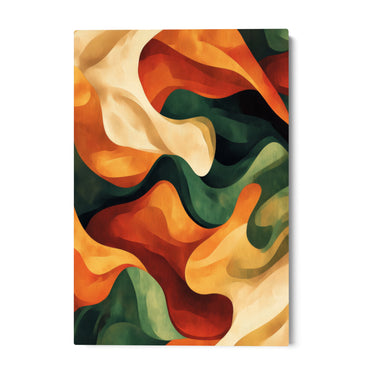 Selles teoses domineerivad värvid on roheline, oranž, punane ja beež. Need toonid sulanduvad omavahel sujuvas liikumises, kutsudes esile loodusmaastike ja vahetuvate aastaaegade ilu. Rohelised varjundid meenutavad lopsakat taimestikku, samas kui oranžid ja punased toonid viitavad päikese soojusele ja sügislehtedele.