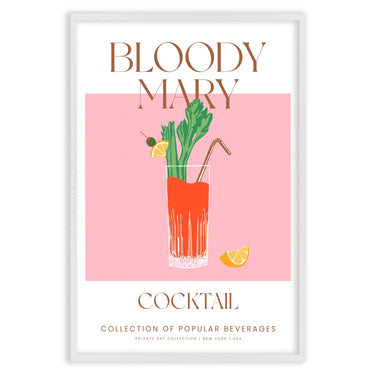 Disain on minimalistlik ja modernne, puhaste joonte ja lihtsate detailidega, mis toovad esile kokteili ilu. Tekst "BLOODY MARY" on kirjutatud elegantsete ja peente tähtedega, samal ajal kui allpool olev sõna "COCKTAIL" lisab Plakatile rafineerituse puudutuse.