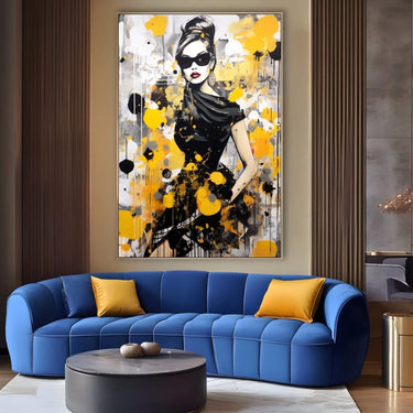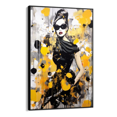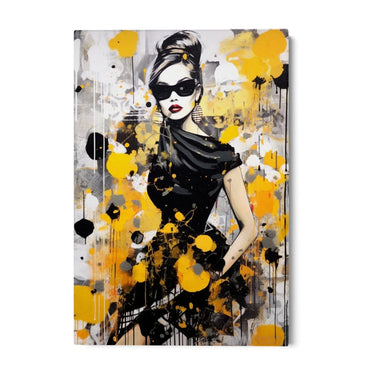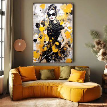 See lõuenditrükk kujutab elegantset naist mustade päikeseprillidega, riietatud peenesse musta kleiti. Kujutis kiirgab müsteeriumi ja stiili tunnet, püüdes koheselt tähelepanu.