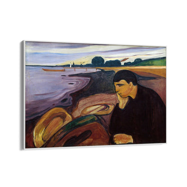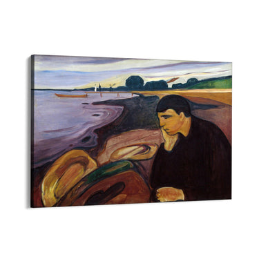 Ova reprodukcija na platnu "Melanholije" savršena je za dodavanje emocionalne i umjetničke dubine bilo kojem životnom prostoru. Kvaliteta tiska hvata svaki detalj i nijansu originalnog djela, omogućujući punu valorizaciju majstorstva Edvarda Muncha.
