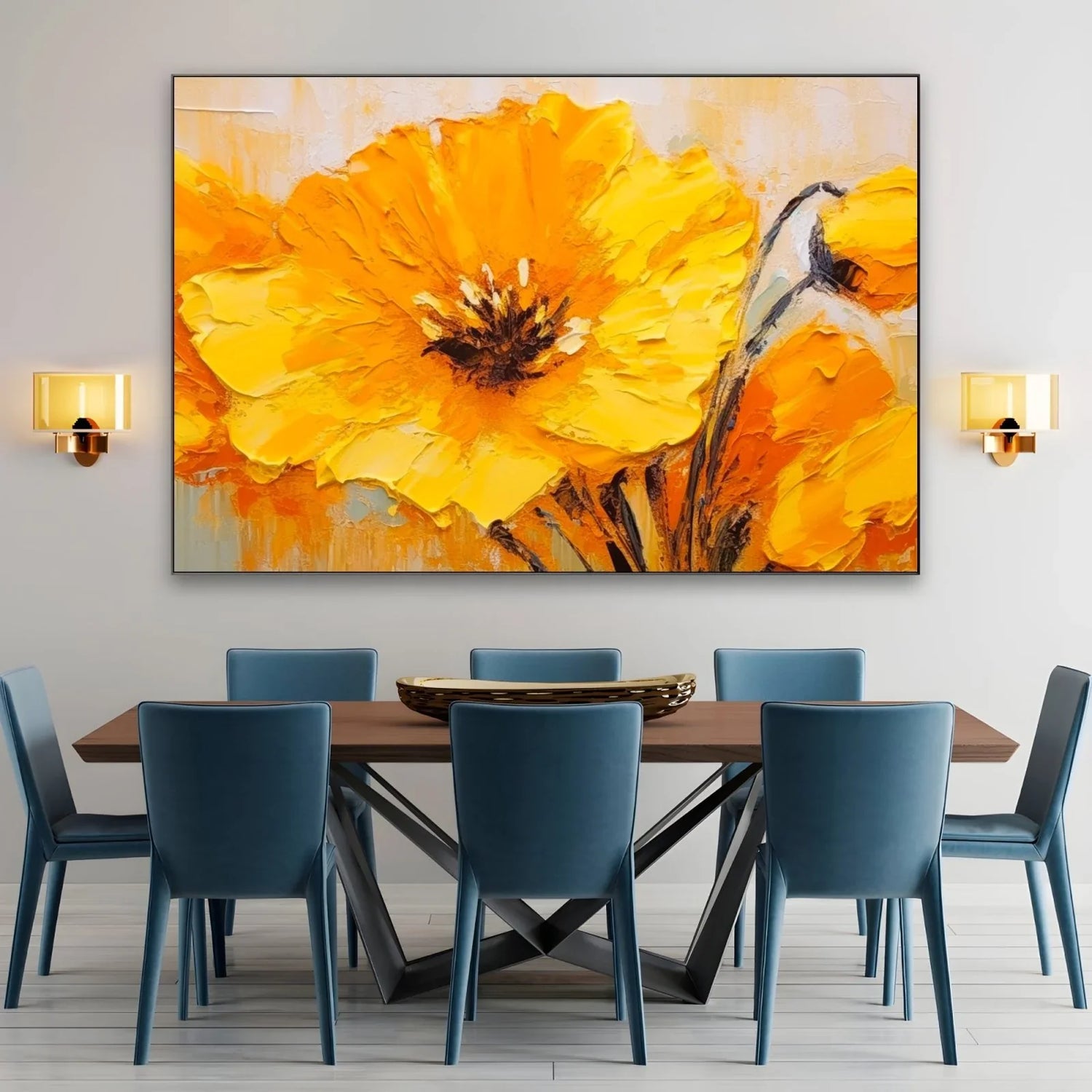 "Wonderful Yellow" je otisak na platnu koji prikazuje bit cvjetne ljepote. Slika predstavlja živahni žuti cvijet, s velikim i detaljnim laticama koje izgledaju gotovo trodimenzionalno zahvaljujući tehnici slikanja.