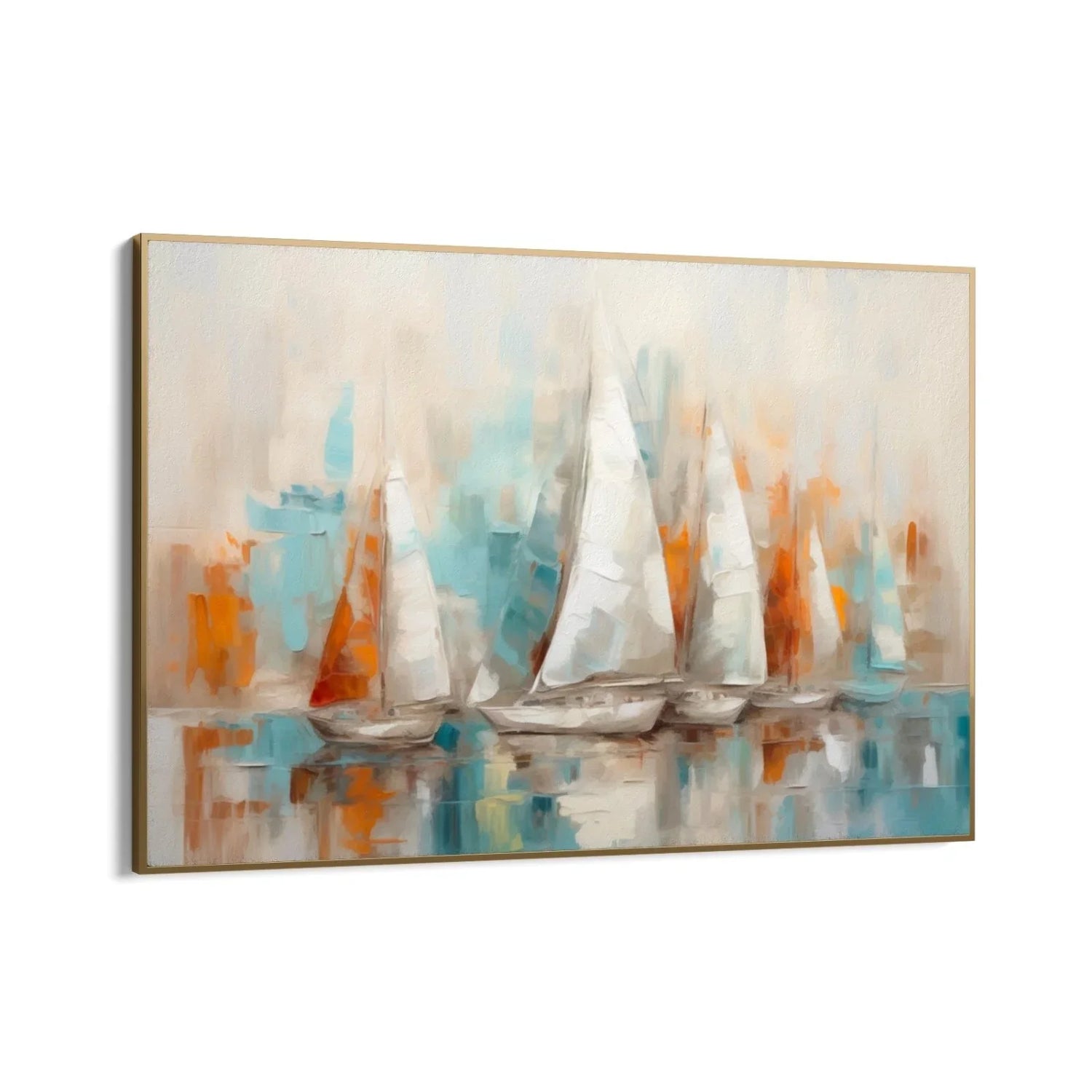 Slika pod nazivom "Apstraktna jedra" zadivljujući je otisak na platnu koji prikazuje bit flote jedrilica. Jedra su prikazana na apstraktan način, s odvažnim, dinamičnim potezima kista koji unose pokret i vitalnost u scenu.