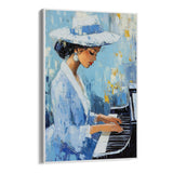 Ovaj tisak na platnu hvata intimni i osobni trenutak, gdje glazba postaje sredstvo izražavanja i razmišljanja. To je djelo koje poziva promatrača da se uroni u tišinu i ljepotu trenutka, slaveći umjetnost glazbe i žensku milost.